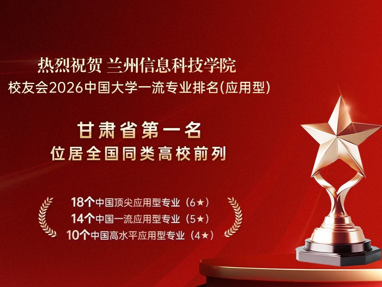 1 月 12 日,全国第三方大学评价机构艾瑞深校友会网(Cuaa.net)正式发布《2026 中国大学排名》,在此次校友会2026中国大学排行榜单中:兰州信息科技学院以96.62分的成绩,位列校友会2026中国大学排名(I类)第19名,稳居全国同类院校二十强。被评定为 6 星级中国顶尖应用型大学,晋升全国同类院校第一方阵!从区域标杆到全国前列,这一跨越不仅是一个星级的跃升,更是学校整体办学实力、社会声誉和人才培养质量获得广泛认可的标...