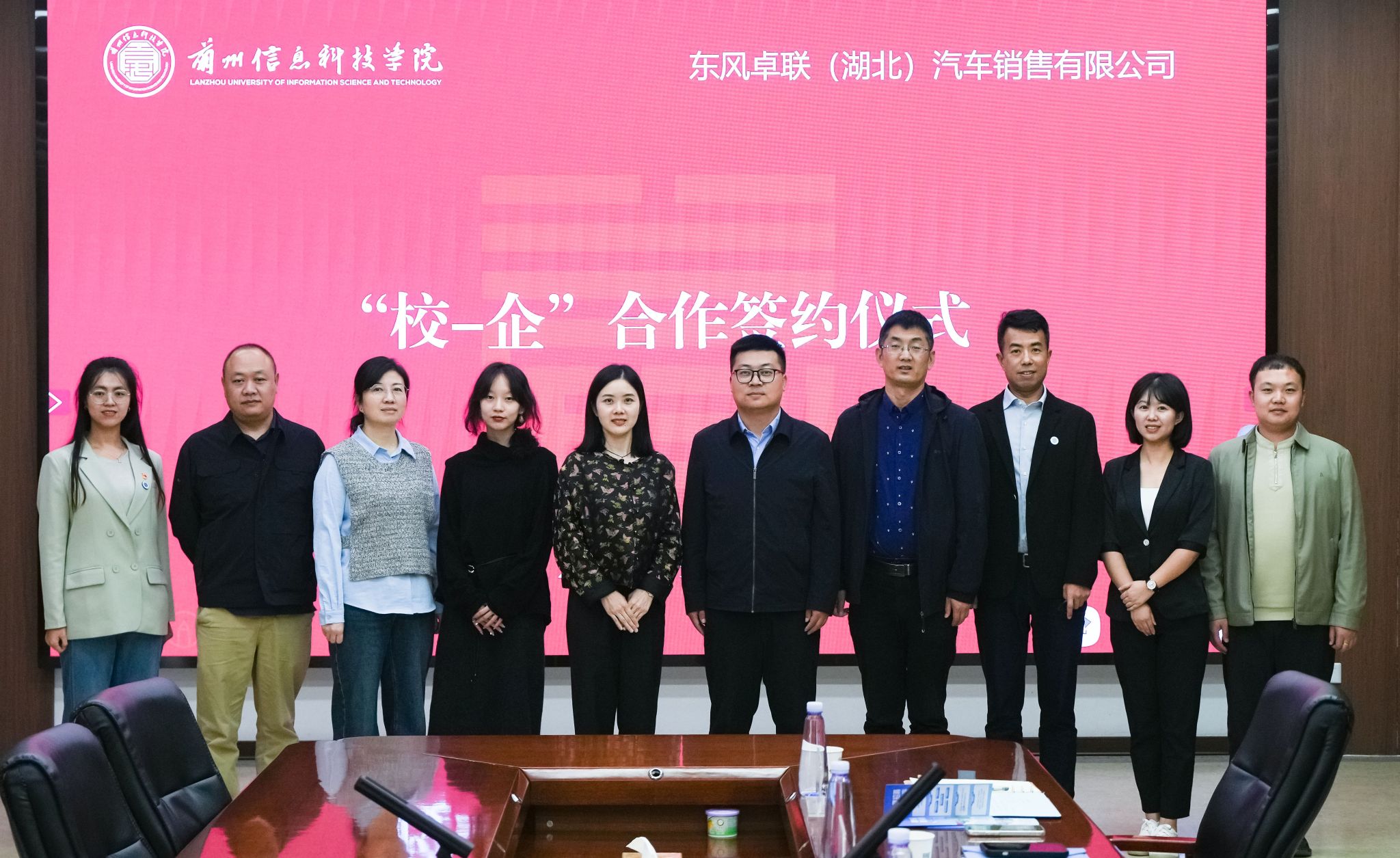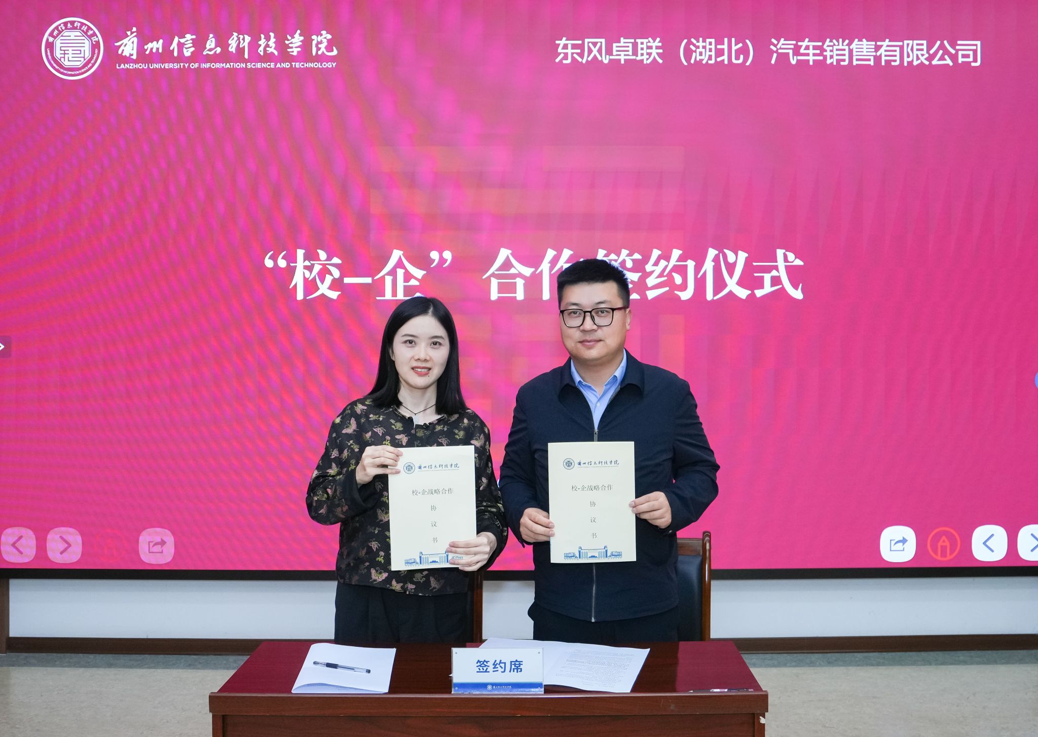 9月22日,兰州信息科技学院与东风卓联(湖北)汽车销售有限公司在校举行“校-企”合作洽谈会暨签约仪式。东风卓联(湖北)汽车销售有限公司营销事业部人力资源总监蔡娇、兰州信息科技学院校长助理苏存兴及相关部门负责人出席仪式,共同签署《校-企战略合作协议书》,标志着双方在产教融合、实习就业、人才培养等领域的深度合作正式启动。