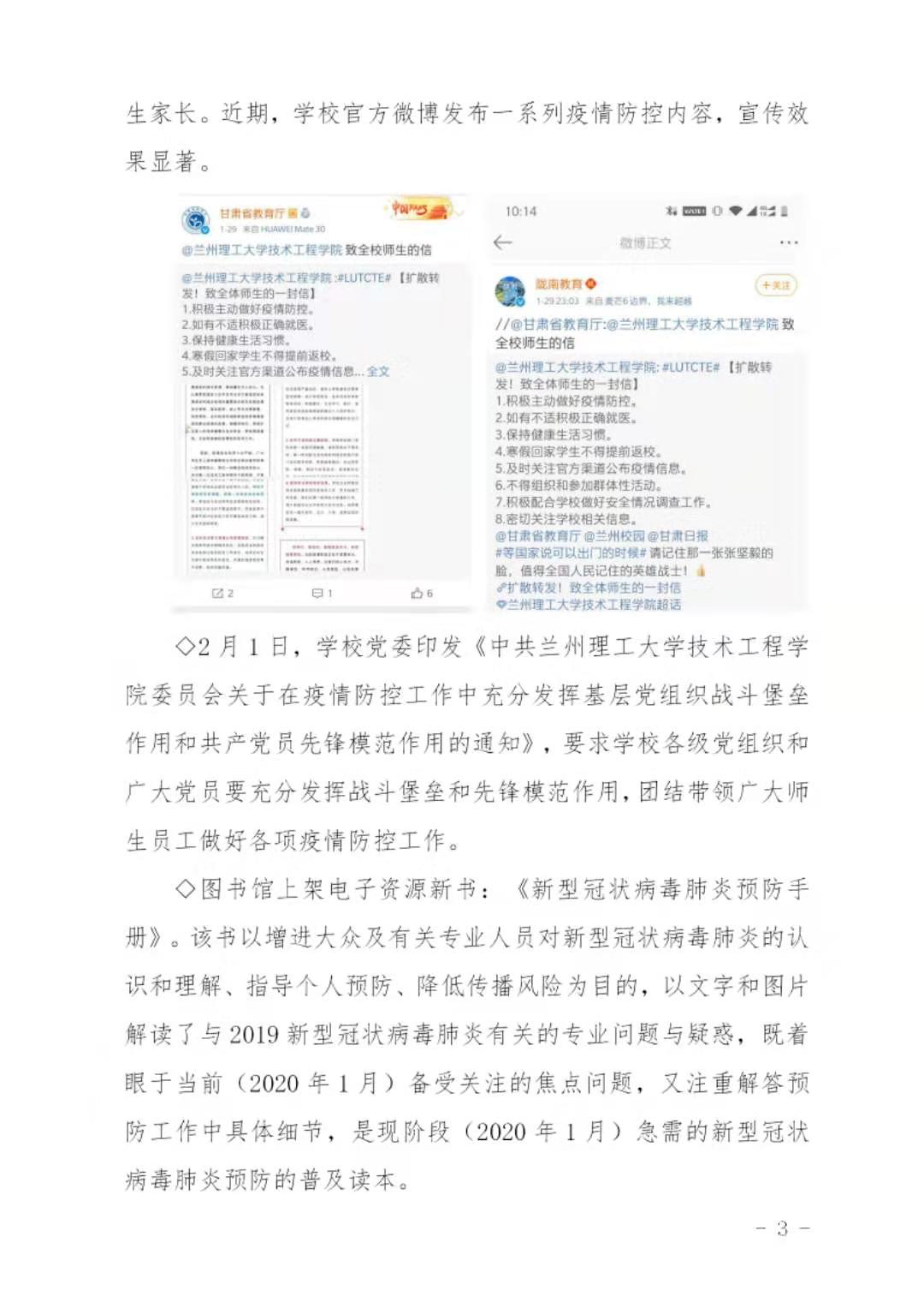 兰州理工大学技术工程学院疫情防控工作简报第2期