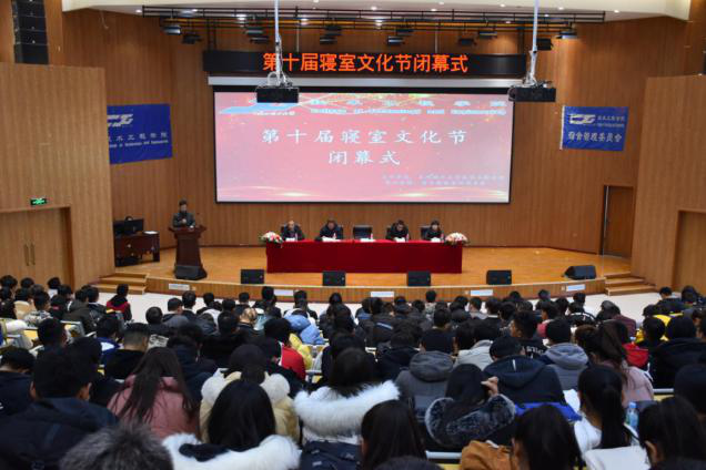 12月9日14:00学校第十届寝室文化节闭幕式在1号报告厅隆重举行。大会在王建龙老师的致词中拉开序幕,由保卫处处长文亚方老师宣读兰州理工大学技术工程学院关于表彰2018-2019学年度“宿舍文明工程建设”先进集体、“学风建设标兵宿舍”“文明宿舍”、“卫生先进宿舍”的决定。最后由学生处处长朱明敏老师作了总结性发言并观看纪录片《榜样四》。通过此次校园安全系列讲座活动,增强了广大师生的安全防范意识和自我防范能力,为预防和减少安全事故的发生起到了积极作用,引导大家形成关爱生命、关注安全、关注社会的良好道德风尚,为建设和谐平安校园奠定了良好的基础。