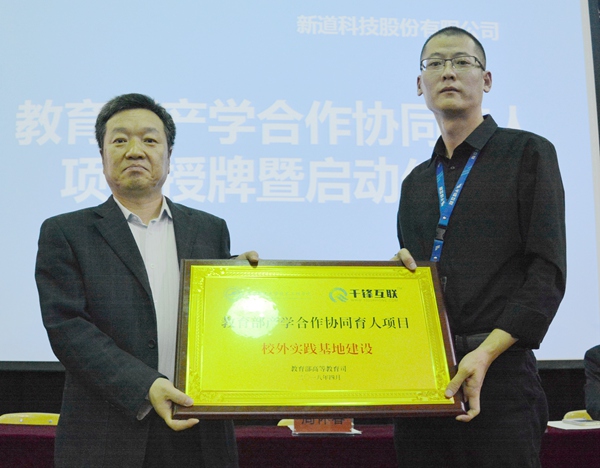 2018年4月24日下午3点,在砺志楼201报告厅,我院与北京千锋互联科技有限公司、新道科技股份有限公司举行了教育部产学合作协同育人项目授牌暨启动仪式。