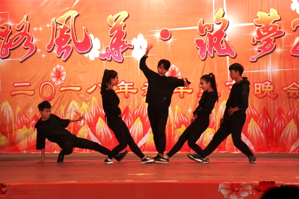 表彰大会结束后,2018新年文艺晚会在《师舞吉祥》中拉开帷幕。器乐合奏《如果有你》每一个音符都表达了对新年的祝福之情;现代舞《Zero》引爆现场气氛;新编歌曲《大中国》和歌伴舞《共筑中国梦》展现了我校大学生的青春活力;武术《精武韵》以高超的表演技巧让广大同学惊叹不已,赢得阵阵掌声;由学院老师带来的《不忘初心》表达了对祖国的祝福。晚会在歌曲《相亲相爱一家人》中落下帷幕。