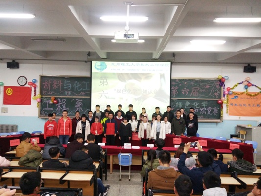 为了激发广大学生对化学知识的热情和兴趣,提高和拓宽大学生化学知识能力的思路、途径和方法,培养在校大学生严谨的学习态度、科学的创新能力。材料与化工工程系于2017年11月26日晚19:00在求是楼D区401教室成功举办了第六届“绿色化学”知识竞赛。