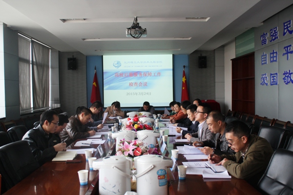 检查结束后,学院在砺志楼行政办公区402会议室召开了专题汇报会。学院办公室、总务处、学生处负责人参加了会议。会议由办公室主任张少峰主持。