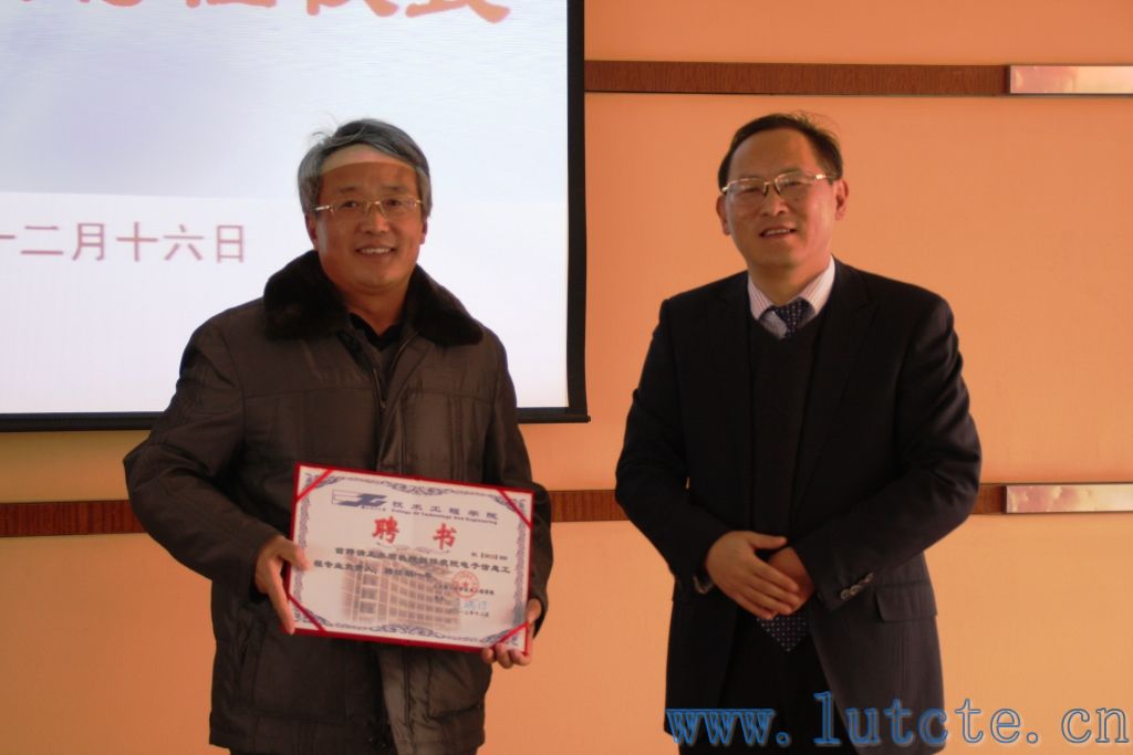 王瑞祥院长为测绘工程专业负责人、兰州理工大学党星海教授颁发聘书
