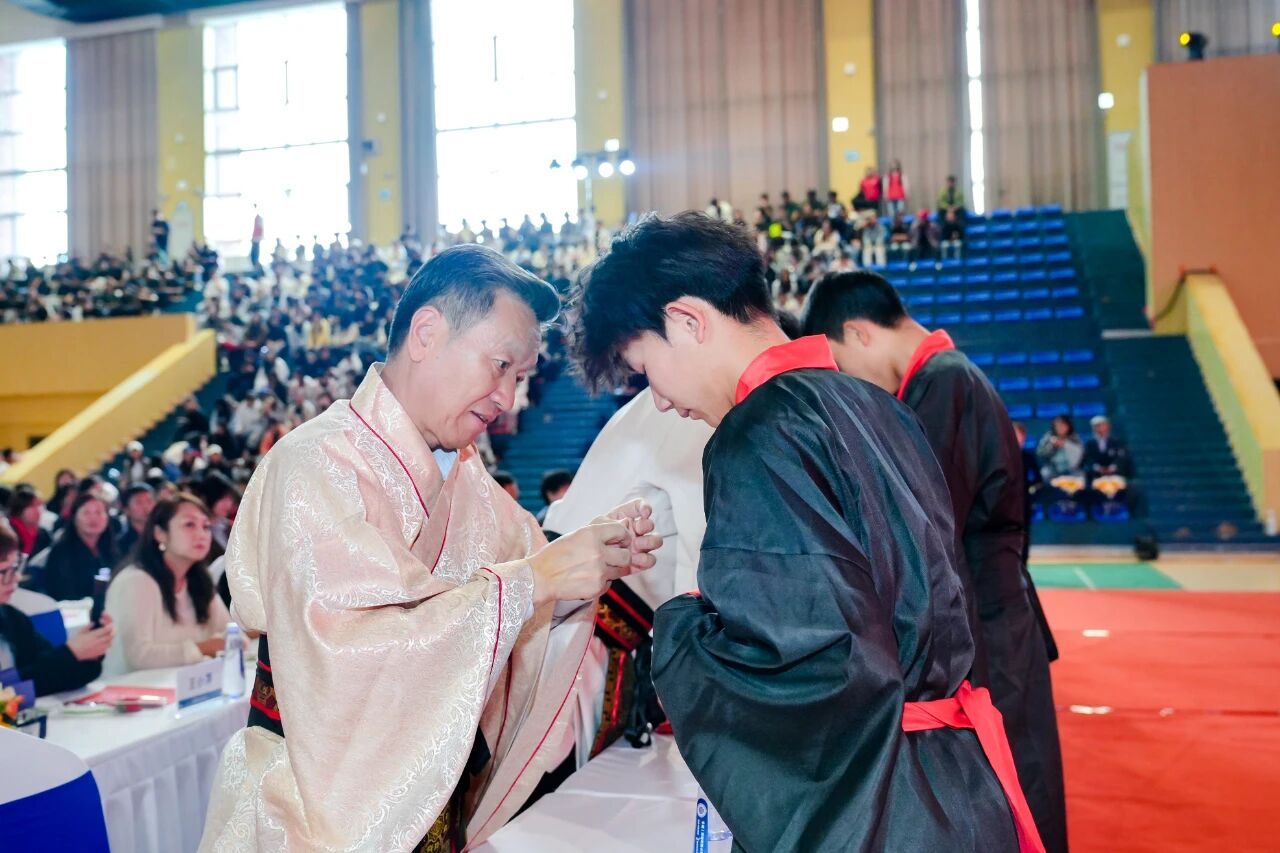 典礼伊始,第一篇章“知遇·兰科学子”拉开帷幕。伴随着雄壮激昂的中华人民共和国国歌,全体在场人员肃立行注目礼,爱国情怀在每个人心中激荡。随后举行的尊师礼仪式上,新生们以庄重的礼仪向在场师长致敬,表达对知识的敬畏与对师长的感恩,彰显了兰科学子良好的精神风貌。