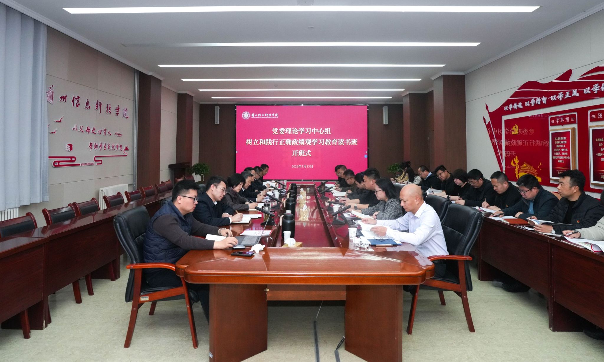 根据党中央、省委、省委教育工委关于开展树立和践行正确政绩观学习教育的部署要求,以及学校党委学习教育工作安排,3月13日,兰州信息科技学院树立和践行正确政绩观学习教育读书班正式开班。学校党委书记周怀春作开班动员并作专题辅导报告。他强调,树立和践行正确政绩观,既是一场深刻的思想洗礼,也是一次全面的实践锻炼。全体党员干部要切实通过读书班学习和整个学习教育过程,校正思想偏差,着力解决好政绩观、权力观、责任心等问题,真正把树立和践行正确政绩观要求内化于心、外化于行。