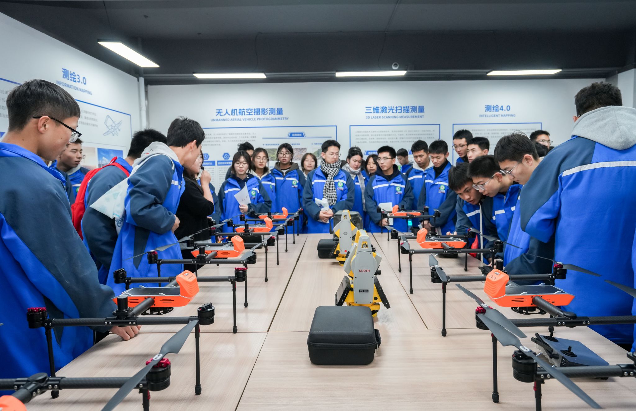 在志愿者热情引导下,同学们分组实地探访了学校实验实训大楼、田径场、1号教学楼及商业街区,全面沉浸于大学校园的学习氛围与生活场景中。大家走进多个省级实验教学示范中心和重点实验室,包括工程训练中心、电气控制与自动化实验中心、机械实验教学示范中心等,并深入参访了人工智能、智能制造、优必选机器人、智能测绘等一批校企共建的现代产业学院。在智能制造产业学院,同学们亲手操作无人机设备,零距离感受科技应用的魅力,深刻体会到学校在产教融合与科技创新方面的实践成果,对应用型人才培养模式有了更加直观的认识。