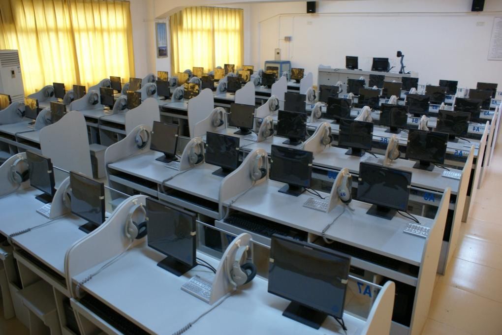 英语专业结合学科特点,建设有配备语音控制教学系统、口语考试软件、自主学习、商务英语实训等内容的智能网络语音实验室,面向英语专业及大学英语等多门课程提供语音实训平台。该语音室也可为学生备考四六级,专四、专八等英语类考试,以及准备外语学科类竞赛提供自主训练系统及多媒体资源。在课堂学习之外,为学生提供了先进的综合实训技能平台,有效提升了语言实践应用能力和创新素质。